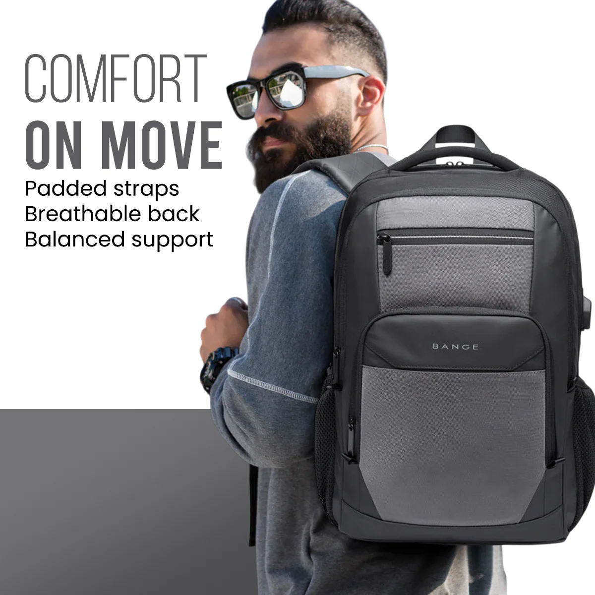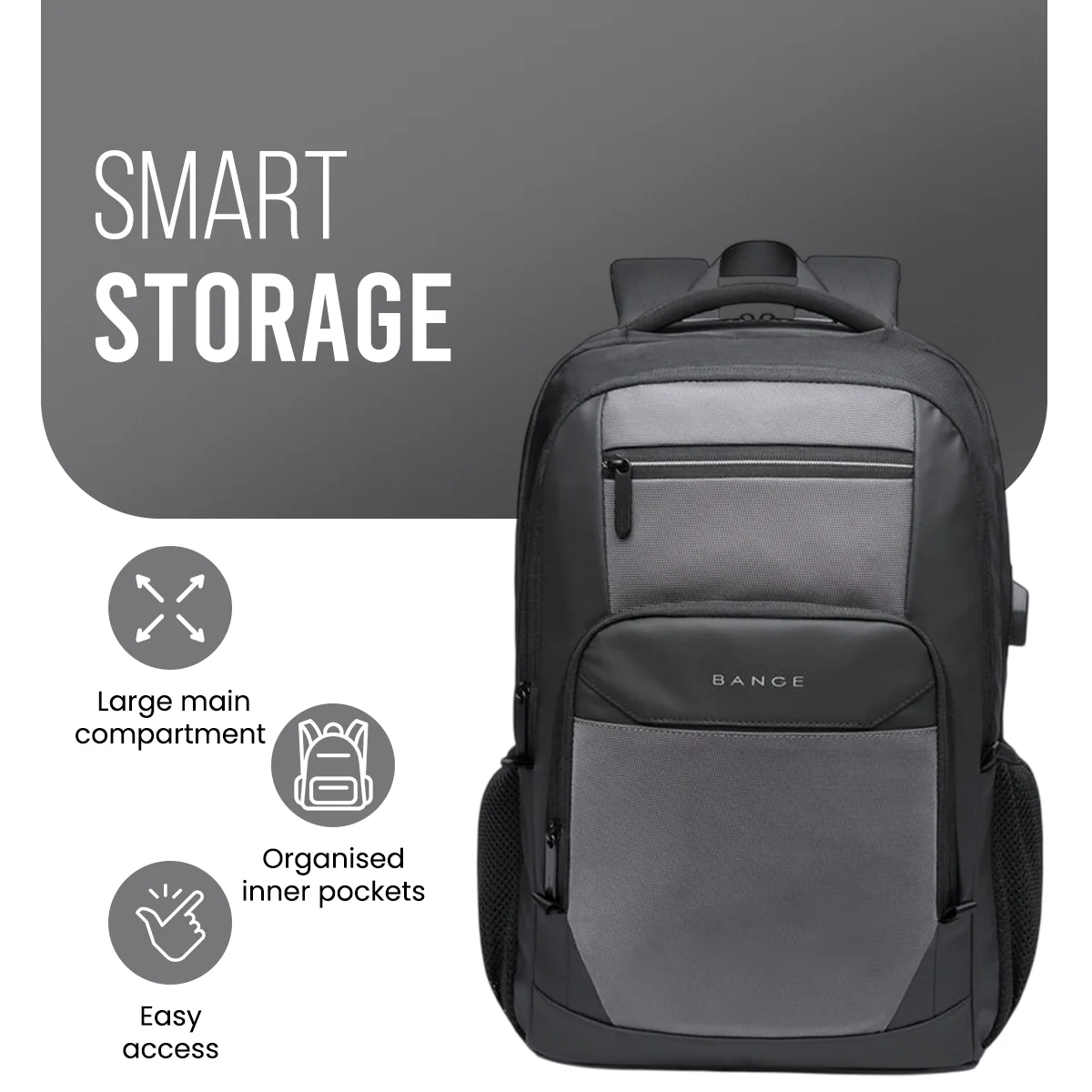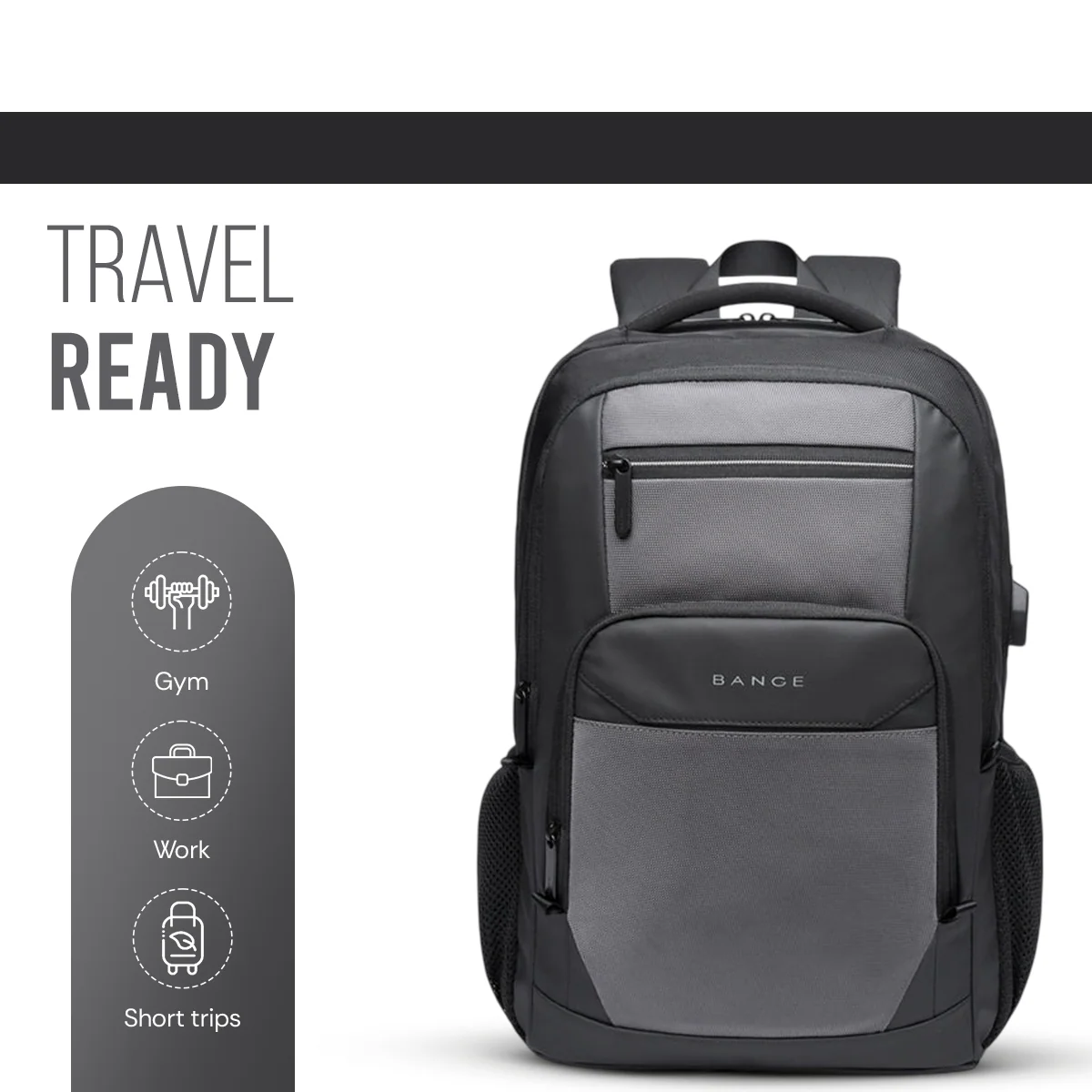 BANGE BG-1922 External USB Port 15.6-inch Laptop Backpacks (Grey)