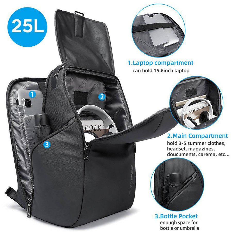 Bange BG-2581 Multifunction 15.6″ Business Travel Backpacks(Black)