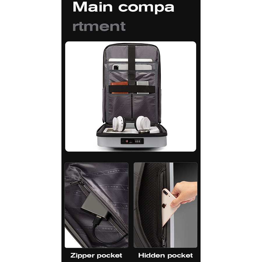 Bange BG-7682 Hard Case Backpacks With TSA Combination Lock And USB Type-C Port(Grey)