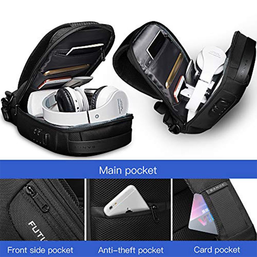 BANGE BG-22085 Anti-Theft Crossbody Shoulder Bag(Black)