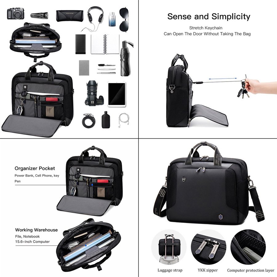 Arctic Hunter GW0004 15.6-Inch Laptop Business Large Capacity Waterproof Shoulder Handbag(Black)