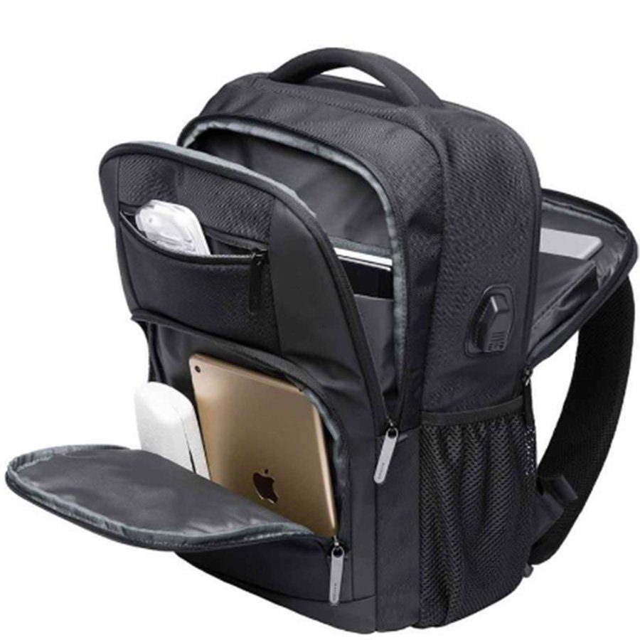 The multi-layer partition design can accommodate 15.6-inch laptop, tablet, A4 size books, wallet, mobile phone, clothes, etc. With external USB port, you can easily and conveniently charge mobile phone, tablet, and other devices without opening the bag