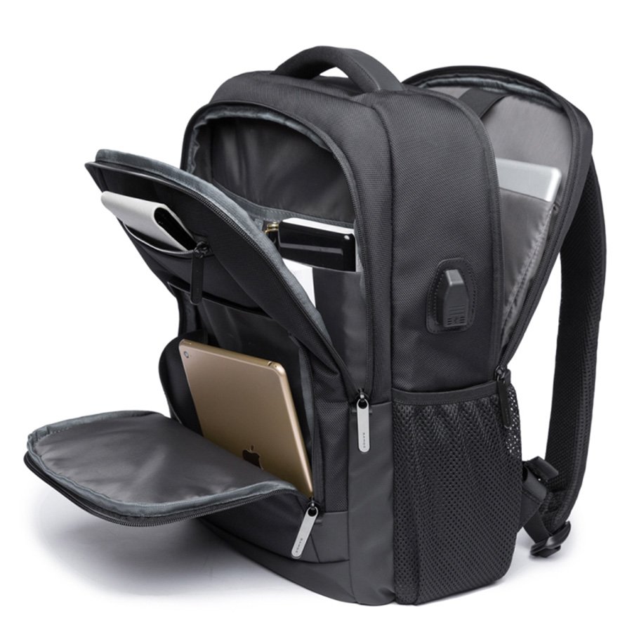 The multi-layer partition design can accommodate 15.6-inch laptop, tablet, A4 size books, wallet, mobile phone, clothes, etc. With external USB port, you can easily and conveniently charge mobile phone, tablet, and other devices without opening the bag
