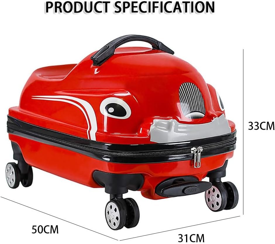 Cartoon Car Kids Can Sit to Ride Rolling Luggage Wheels Carry-on Travel Trolley Case (Red)
