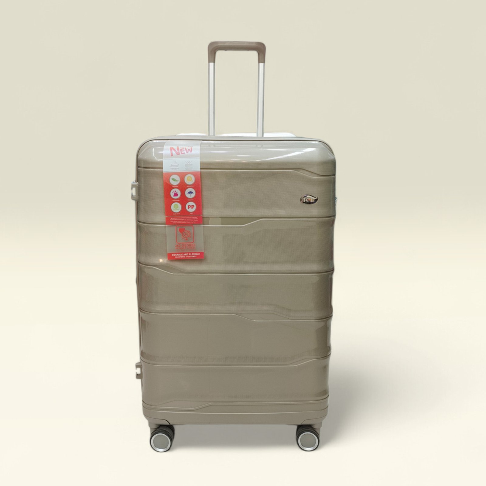 ICE lightweight Hardcase PP With 360 Degree wheels Trolley Luggage (Champagne)